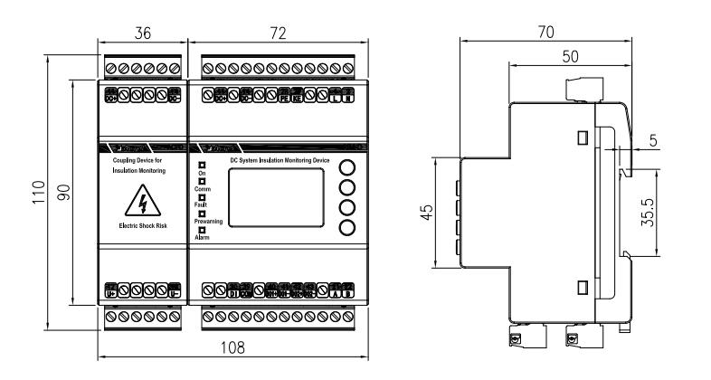 Tá imfhálú ceithre mhodúil agus gléasadh iarnróid DIN ag an bhfeiste, rud a fhágann go bhfuil sé éasca é a shuiteáil agus a chomhtháthú sna córais atá ann cheana féin.