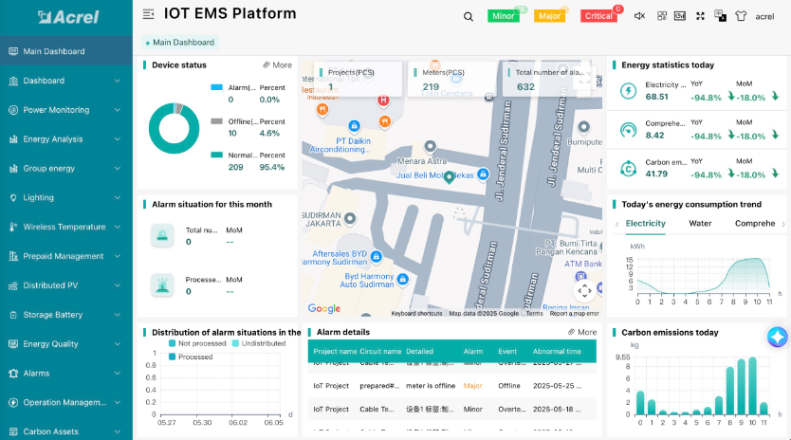 Chun oibriú iargúlta agus monatóireacht chliste a chumasú, d'imscar Acrel réiteach comhtháite a chomhcheanglaíonn an méadar fuinnimh ADW300-4G le ardán IoT, ag soláthar méadrú fíor-ama, foláirimh locht, agus rialú láraithe. Is ionann infheistíocht iomlán an tionscadail agus thart ar US$200,000.